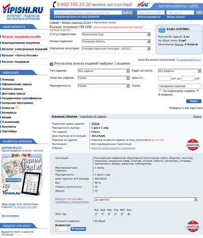 Подписка с помощью http://vipishi.ru - это легко, просто, быстро и удобно!